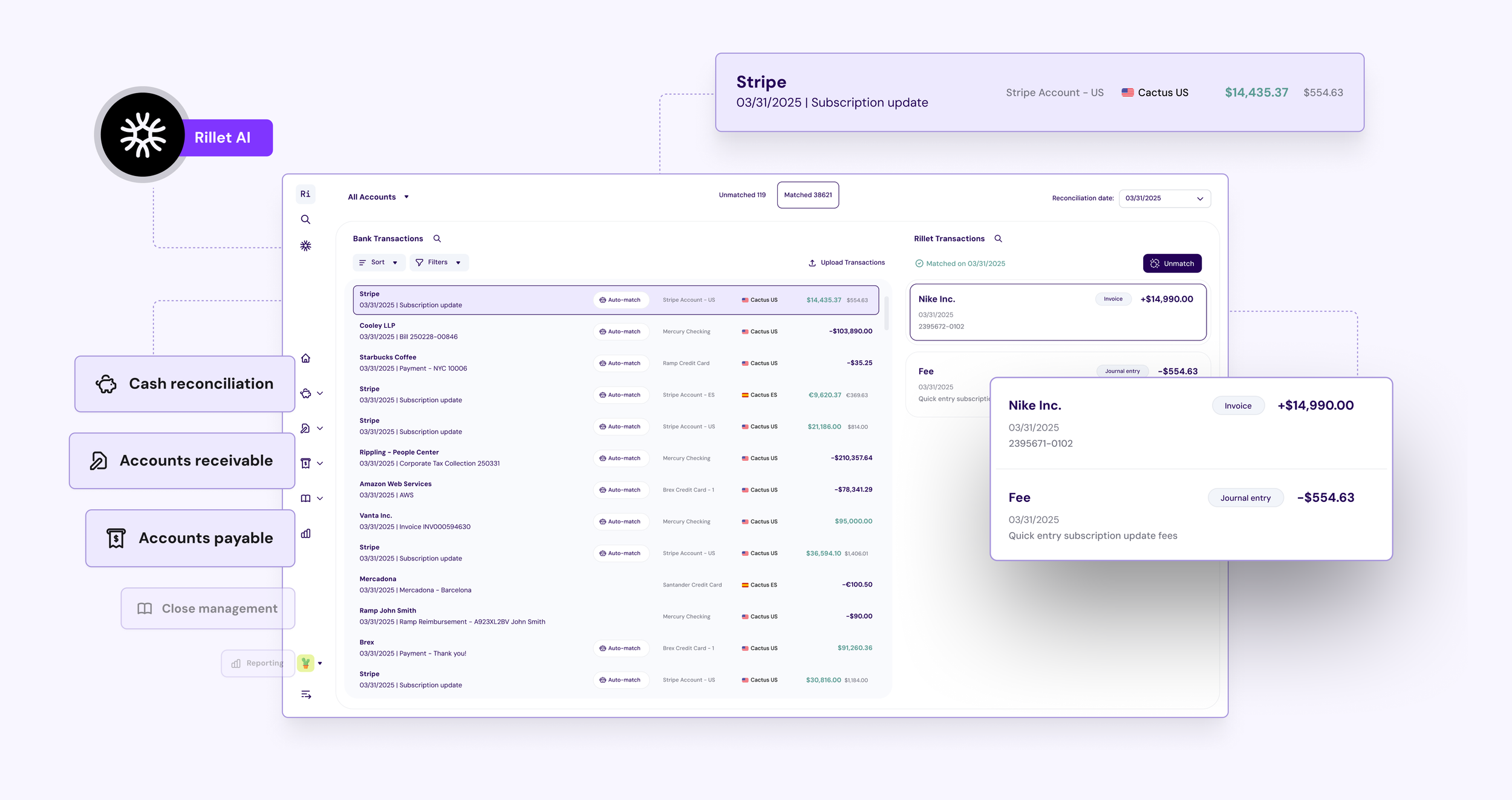 Rillet dashboard, providing real‑time insights and visibility across finance workflows.